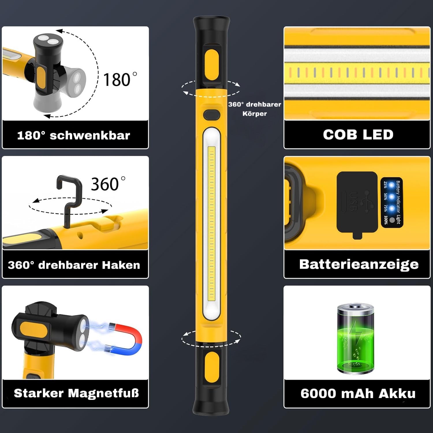 Nie wieder im Dunkeln stehen! Egal ob Schrauben, Campen oder unterwegs. Mit 3 Lichtmodi, superstarker COB-LED und langem Akku hält dich nichts mehr auf.
